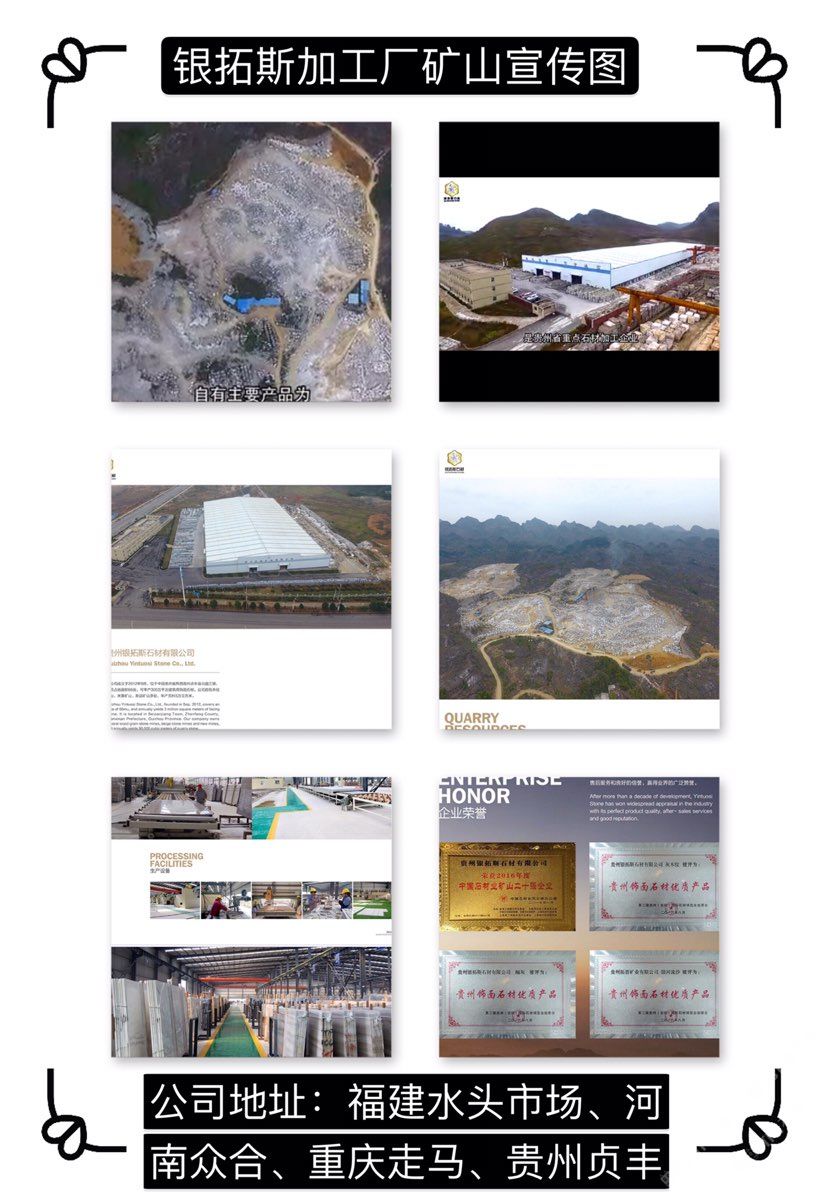 貴州銀拓斯石材有限公司成立于2012年9月,位于黔西南州貞豐縣北盤江鎮(zhèn),經(jīng)營(yíng)范圍為石材開(kāi)采、加工、銷售,主要加工貴州木紋、米黃等系列產(chǎn)品。貴州銀拓斯石材有限公司占地面積65.74畝。引進(jìn)國(guó)內(nèi)外先進(jìn)的石材生產(chǎn)工藝和加工設(shè)備,現(xiàn)已安裝科達(dá)靜壓鋸6臺(tái)、高效磨機(jī)1臺(tái)等設(shè)備,年產(chǎn)板材100萬(wàn)平方米。公司自有木紋礦山兩處、米黃礦山兩處、新品礦山兩處,年產(chǎn)荒料5萬(wàn)立方米。公司秉承“勵(lì)志創(chuàng)新、篤守誠(chéng)信”的經(jīng)營(yíng)理念,立足于重實(shí)際、辦實(shí)事、見(jiàn)實(shí)效,把文化理念融入到生產(chǎn)建設(shè)和質(zhì)量管理的各個(gè)環(huán)節(jié),致力于用文化提升領(lǐng)導(dǎo)力、執(zhí)行力和凝聚力,以文化促進(jìn)生產(chǎn)力,以軟實(shí)力提升“銀拓斯”整體發(fā)展水平,為客戶提供“高效率、高品質(zhì)、全方位”的服務(wù),不斷提升產(chǎn)品品質(zhì),程度地滿足客戶的需求。\\\\\\\