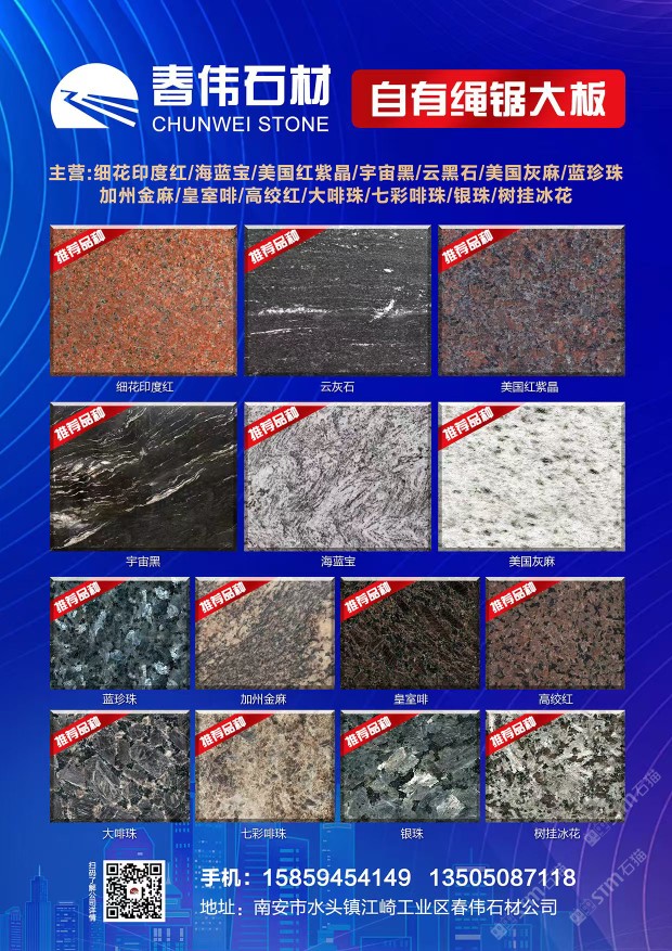 專業(yè)生產(chǎn),砂鋸大板,蘭珍珠,幻彩虹,云黑石,七彩啡,綠星,幻彩紫,皇室啡,美國白麻,美國灰麻,加卅金麻,高絞紅,紅鉆,樹掛冰花,巴西金麻,紫點金麻,黑水晶,等各種進口石材,云黑石大板/皇室啡/綠星/藍珍珠/巴西金麻/英國棕/樹掛冰花/美國灰麻/高蛟紅