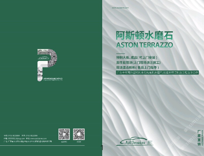 我們擁有國(guó)家質(zhì)量管理體系認(rèn)證,國(guó)家石材產(chǎn)品質(zhì)量監(jiān)督檢測(cè)全部合格,重要的是放射性核數(shù)限量我們達(dá)到A級(jí), 無(wú)孔 無(wú)裂? 無(wú)變形? 無(wú)鉀荃?? 綠色環(huán)保??? 壽命等同建筑物?? 主要原材料高強(qiáng)度水泥?? 室內(nèi)室外地面墻面鋪貼無(wú)裂無(wú)空鼓,正宗無(wú)機(jī)水磨石請(qǐng)認(rèn)準(zhǔn)阿斯頓!