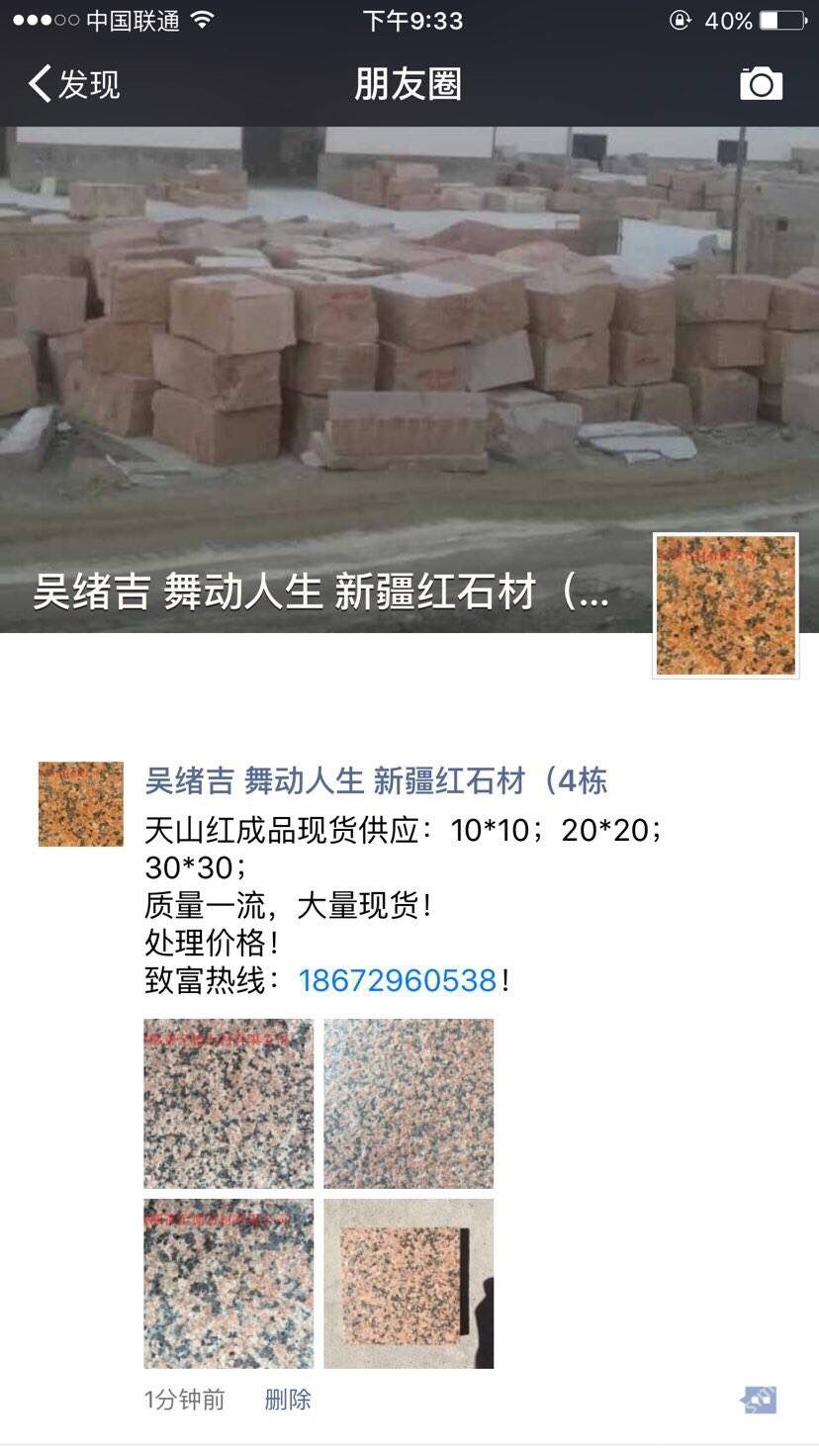 鄯善縣至德石業(yè)有限公司位于美麗的葡萄之鄉(xiāng)~新疆吐魯番鄯善縣鄯善石材工業(yè)園。本公司主要經(jīng)營天山紅,新疆紅,鄯善紅,新疆黃,雪蓮花,灰麻等各類新疆石種,擁有先進的生產(chǎn)設(shè)備, 雄厚的技術(shù)力量,是一家集礦山開采,石材加工,銷售于一體的多年老品牌石材公司。本公司還設(shè)石材銷售點于各個大型建材市場,廣東云浮市思勞,廣東云浮市珠洞,福建省水頭鎮(zhèn)閩南建材市場。承諾滿足不同地區(qū)的采購商多種需求。我們期待您的來電,竭誠歡迎新老客戶共創(chuàng)雙贏。