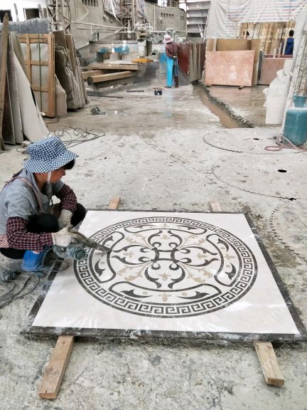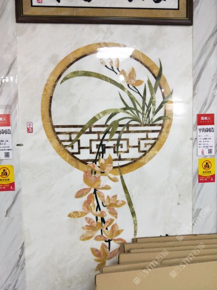 本公司 轉(zhuǎn)營(yíng)大理石(歐亞木紋,藍(lán)冰玉) 水刀拼花 電視背景,特價(jià)石材。