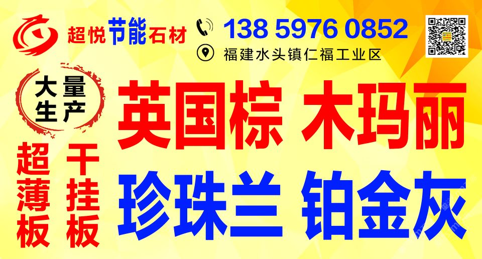 公司堅持奉行“創(chuàng)新永不止步、匠心智造每一塊石材”的經(jīng)營理念,爭創(chuàng)花崗巖知名品牌。\\