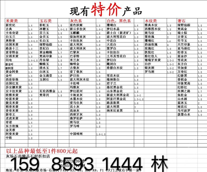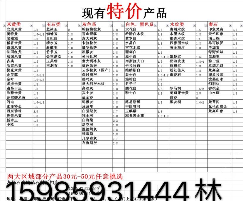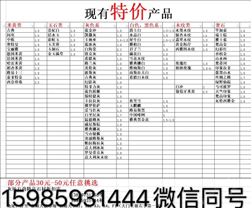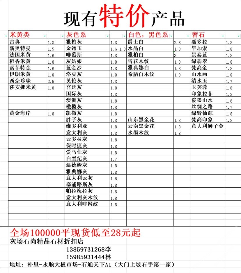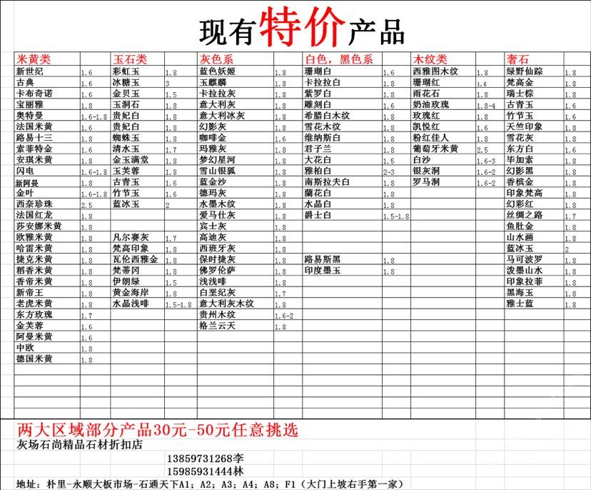 現(xiàn)有100000平大板特價(jià)(百來(lái)個(gè)品種),低至30元起
