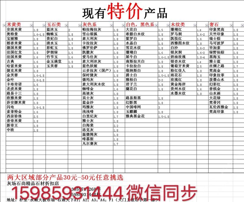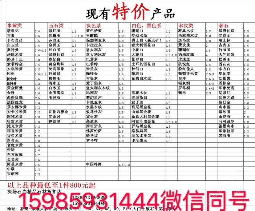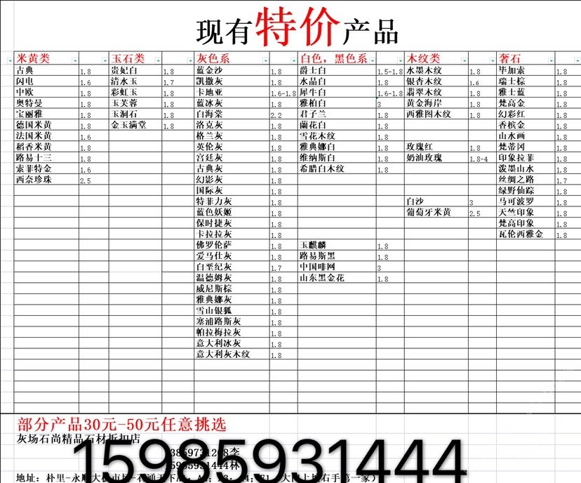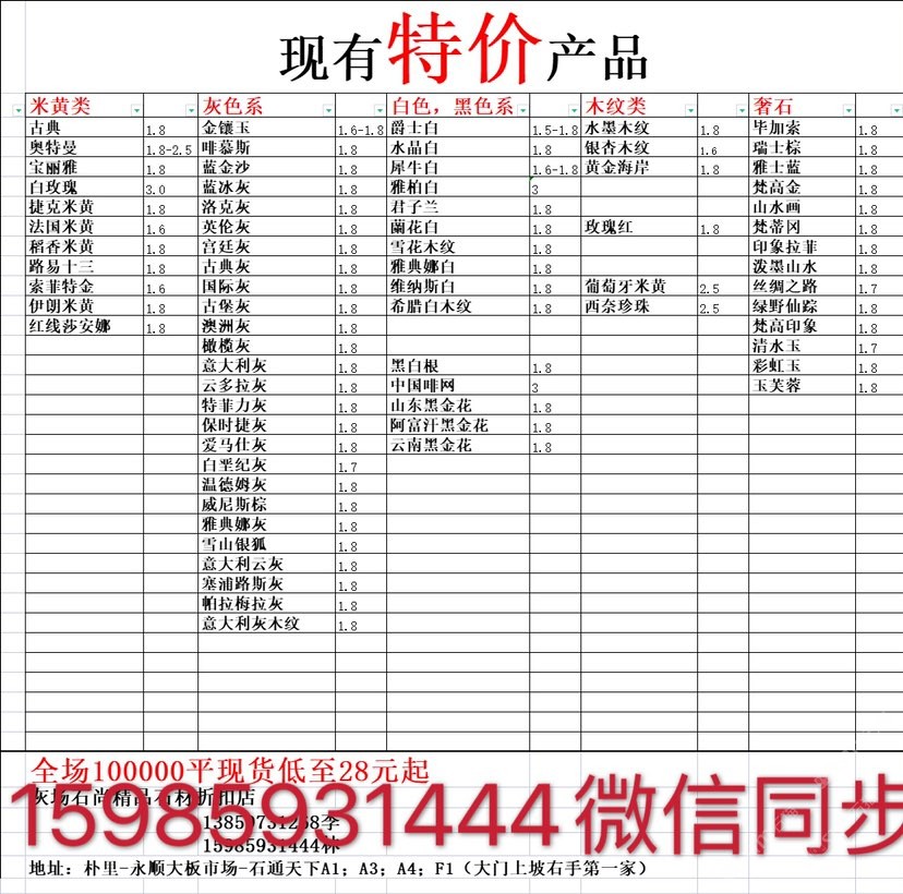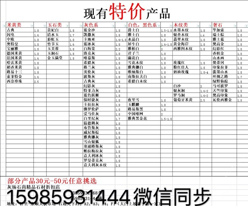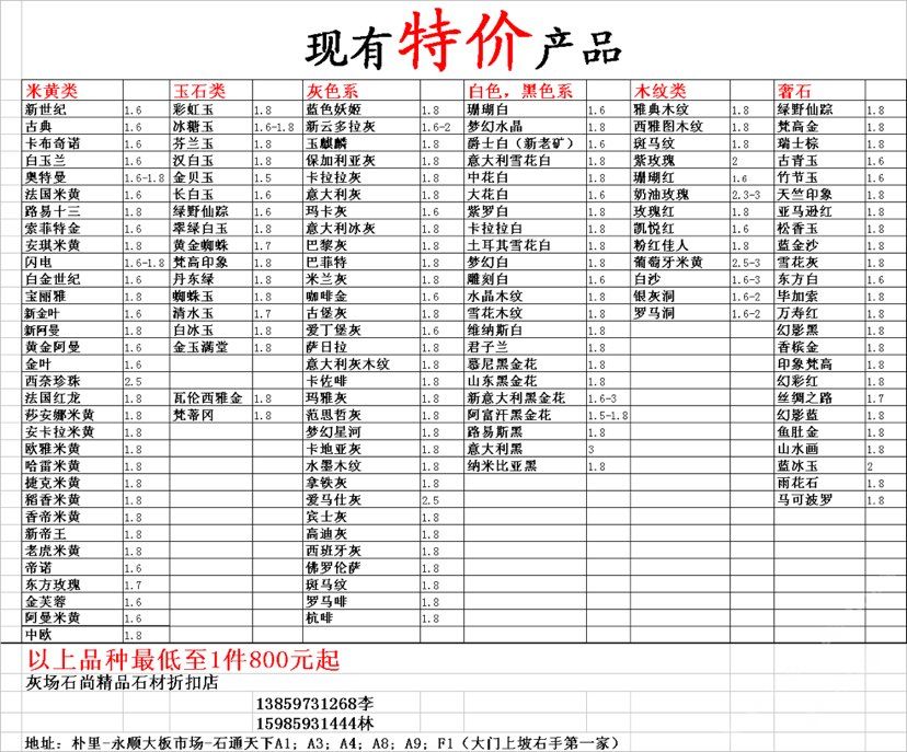 現(xiàn)有100000平大板特價(jià)(百來(lái)個(gè)品種),低至30元起