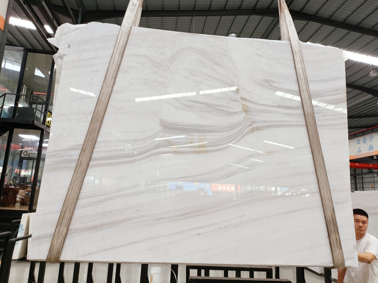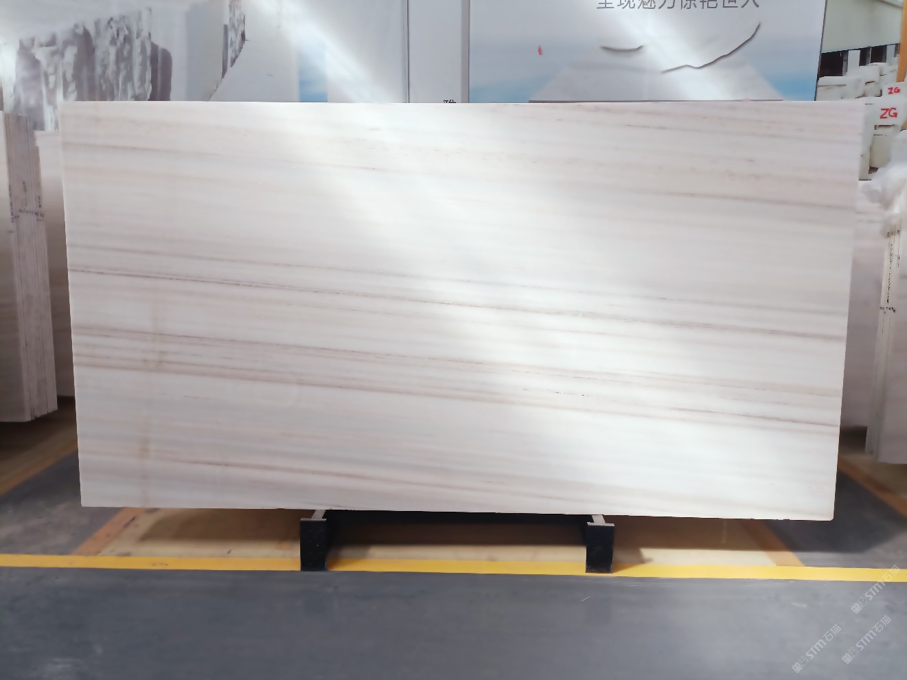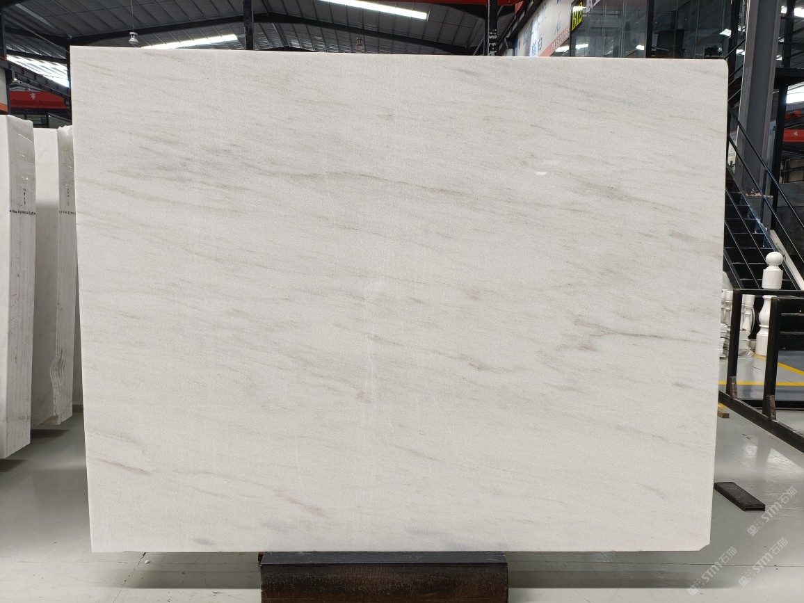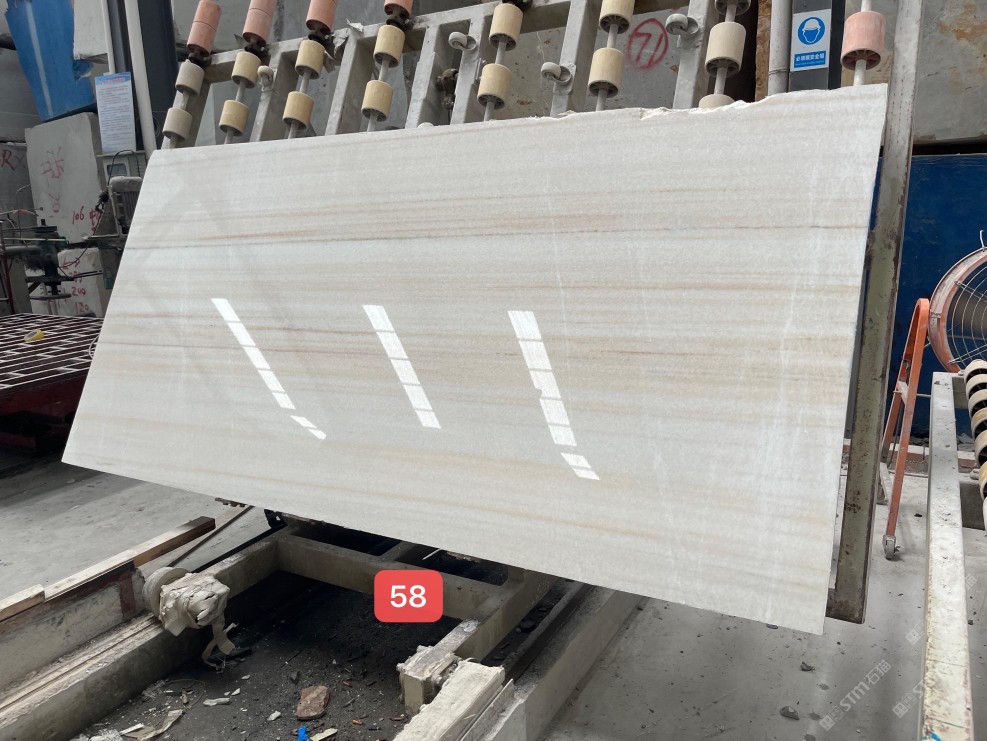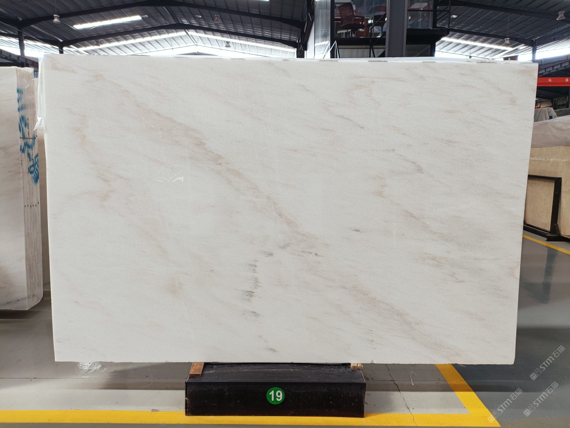 云浮站石材公司開發(fā)的歐亞白獨立礦山,專屬道路,礦口面積約 725 畝,證件齊全。今年礦口開采出直紋,亂紋優(yōu)質大板材料,礦山采用單面墻平臺開采方式,10臺繩鋸、5臺鏟車、5臺勾機、一臺 30 噸叉車,共有職工40人,已有兩個開采平臺。礦山已開采多年,道路、設施都已成熟,現產能穩(wěn)定增長。品質非常穩(wěn)定,一石兩面分別可以產出直紋和亂紋兩種紋路,材質為細膩的玉質品體。