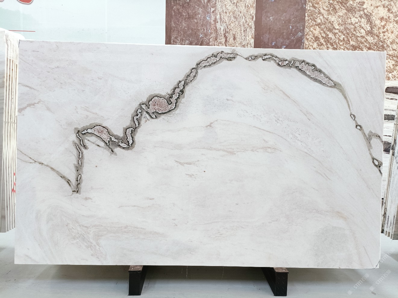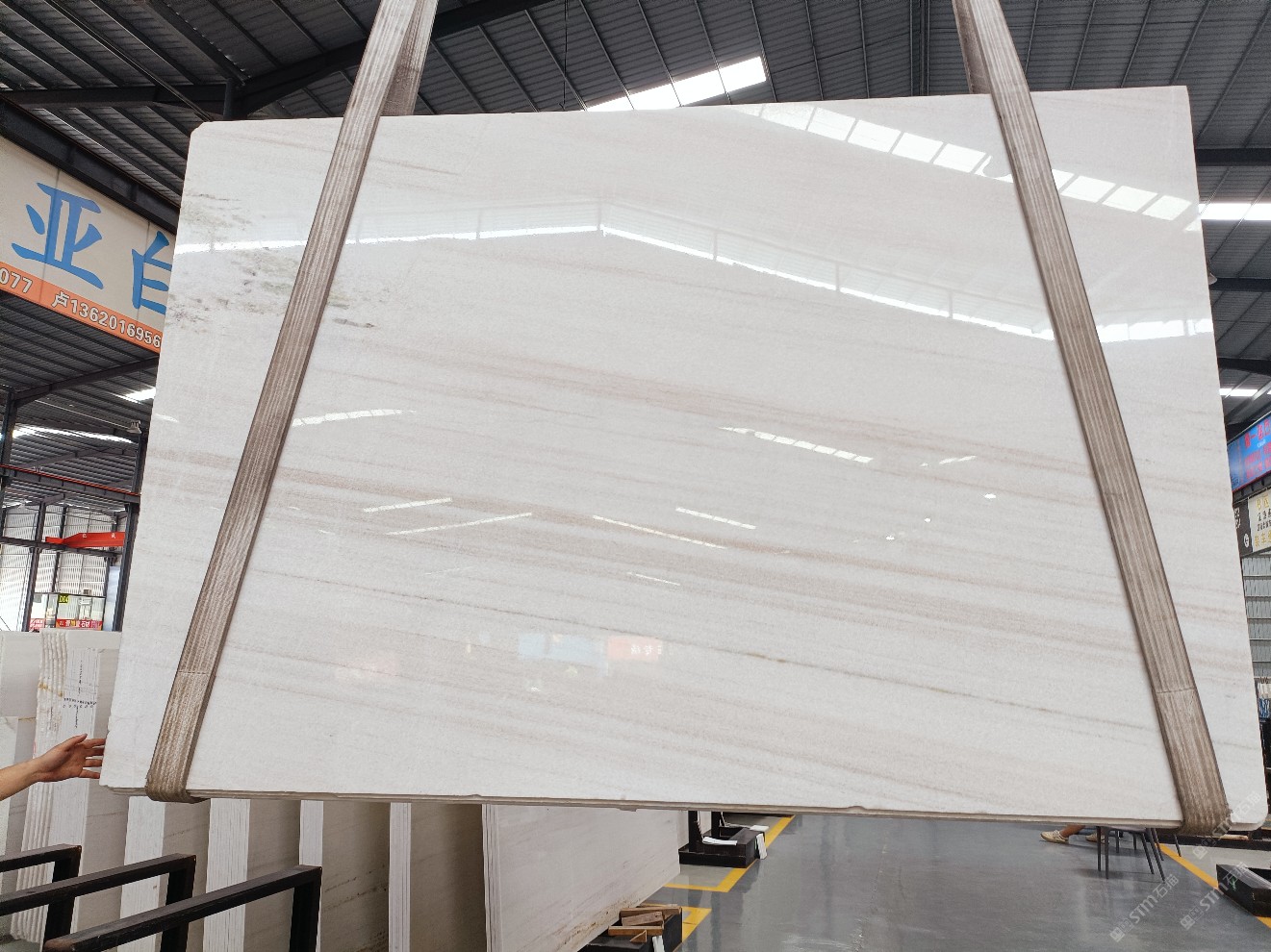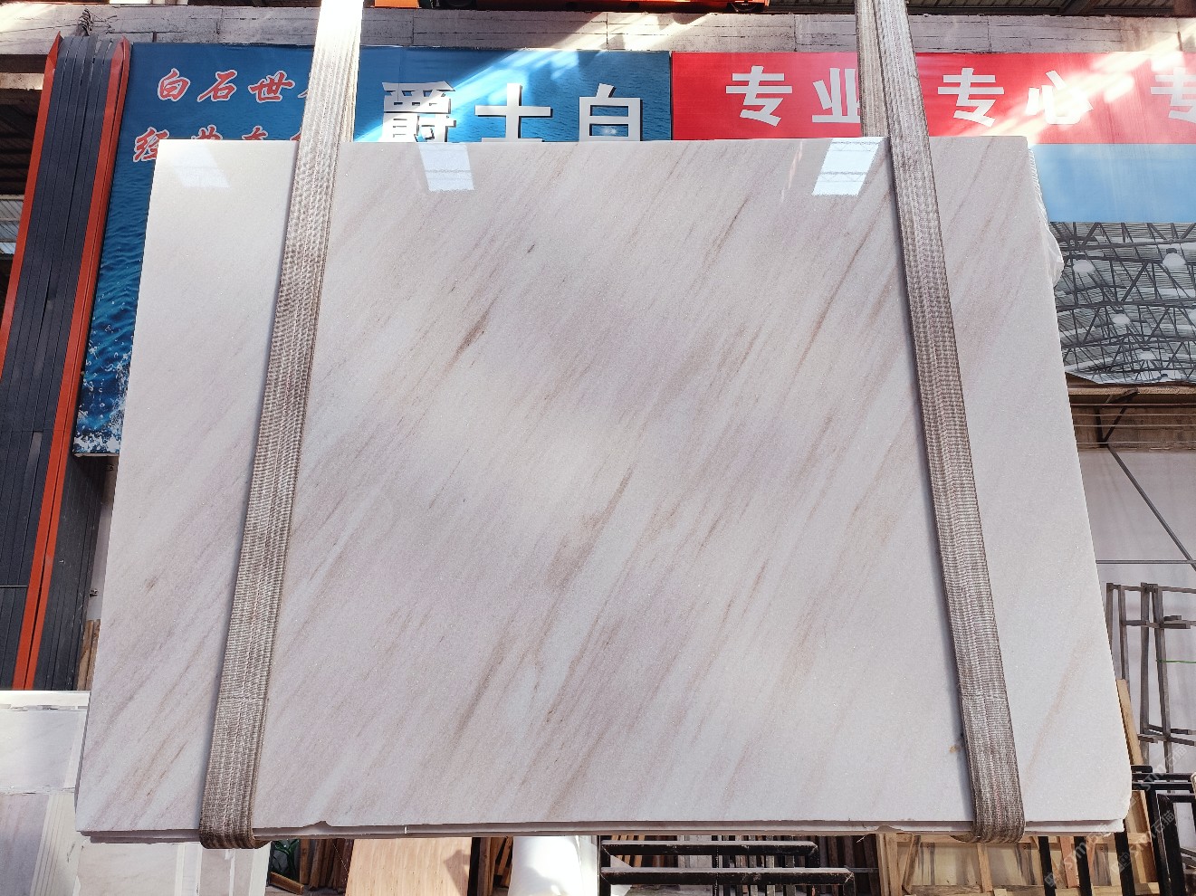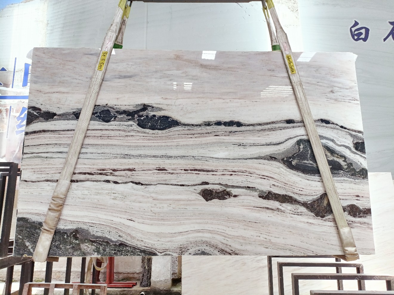 云浮站石材公司開發(fā)的歐亞白獨立礦山,專屬道路,礦口面積約 725 畝,證件齊全。今年礦口開采出直紋,亂紋優(yōu)質大板材料,礦山采用單面墻平臺開采方式,10臺繩鋸、5臺鏟車、5臺勾機、一臺 30 噸叉車,共有職工40人,已有兩個開采平臺。礦山已開采多年,道路、設施都已成熟,現產能穩(wěn)定增長。品質非常穩(wěn)定,一石兩面分別可以產出直紋和亂紋兩種紋路,材質為細膩的玉質品體。