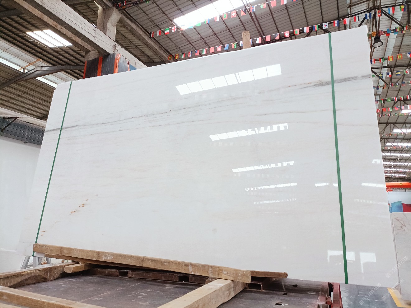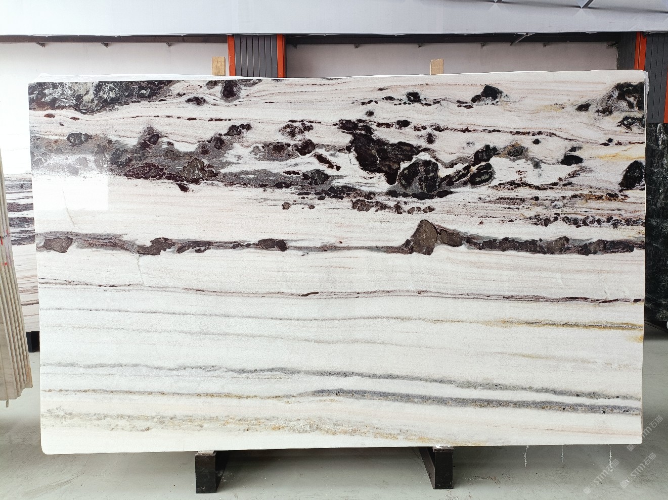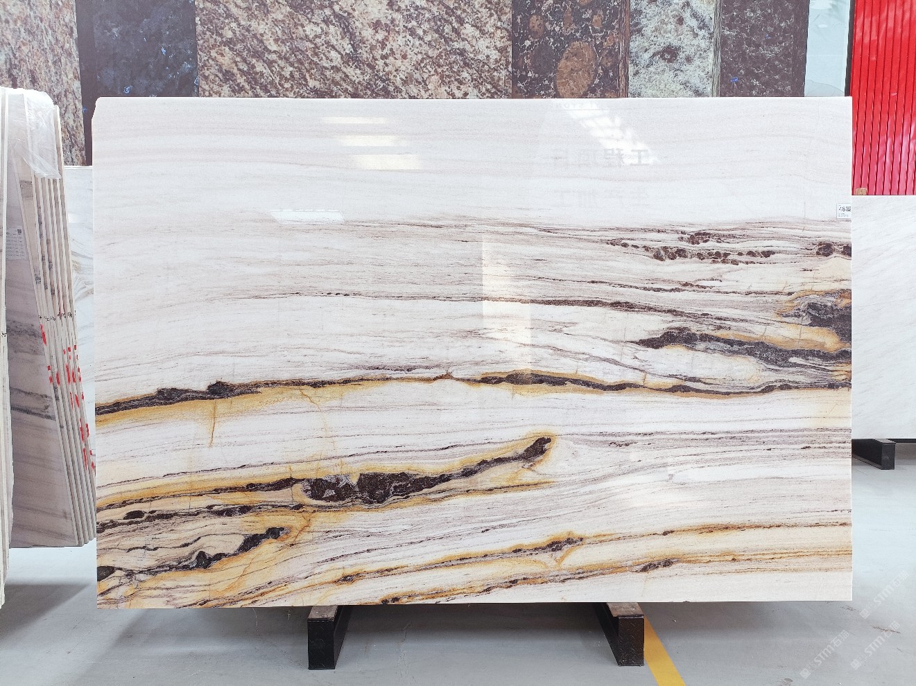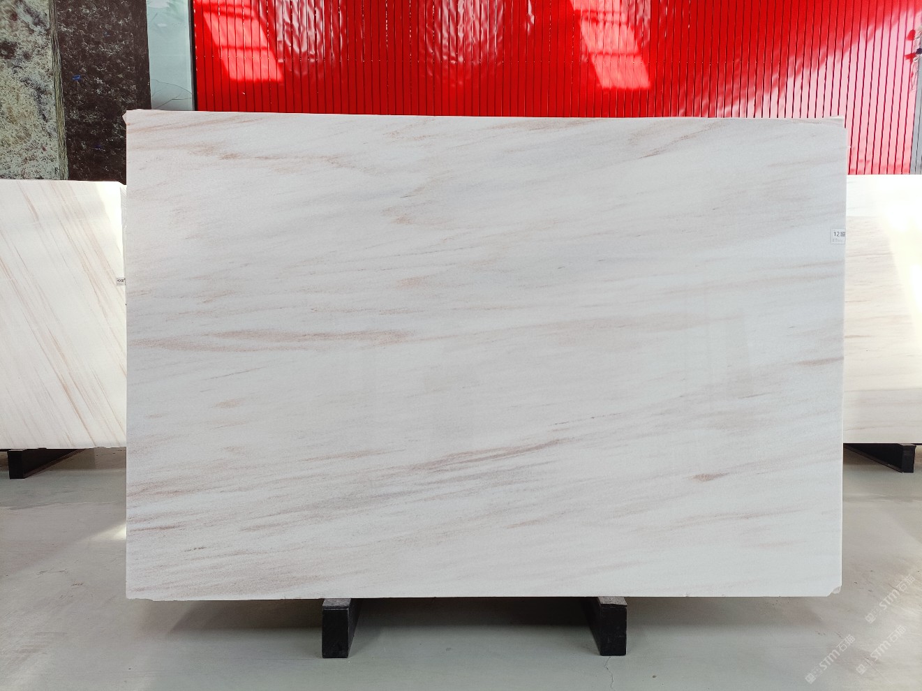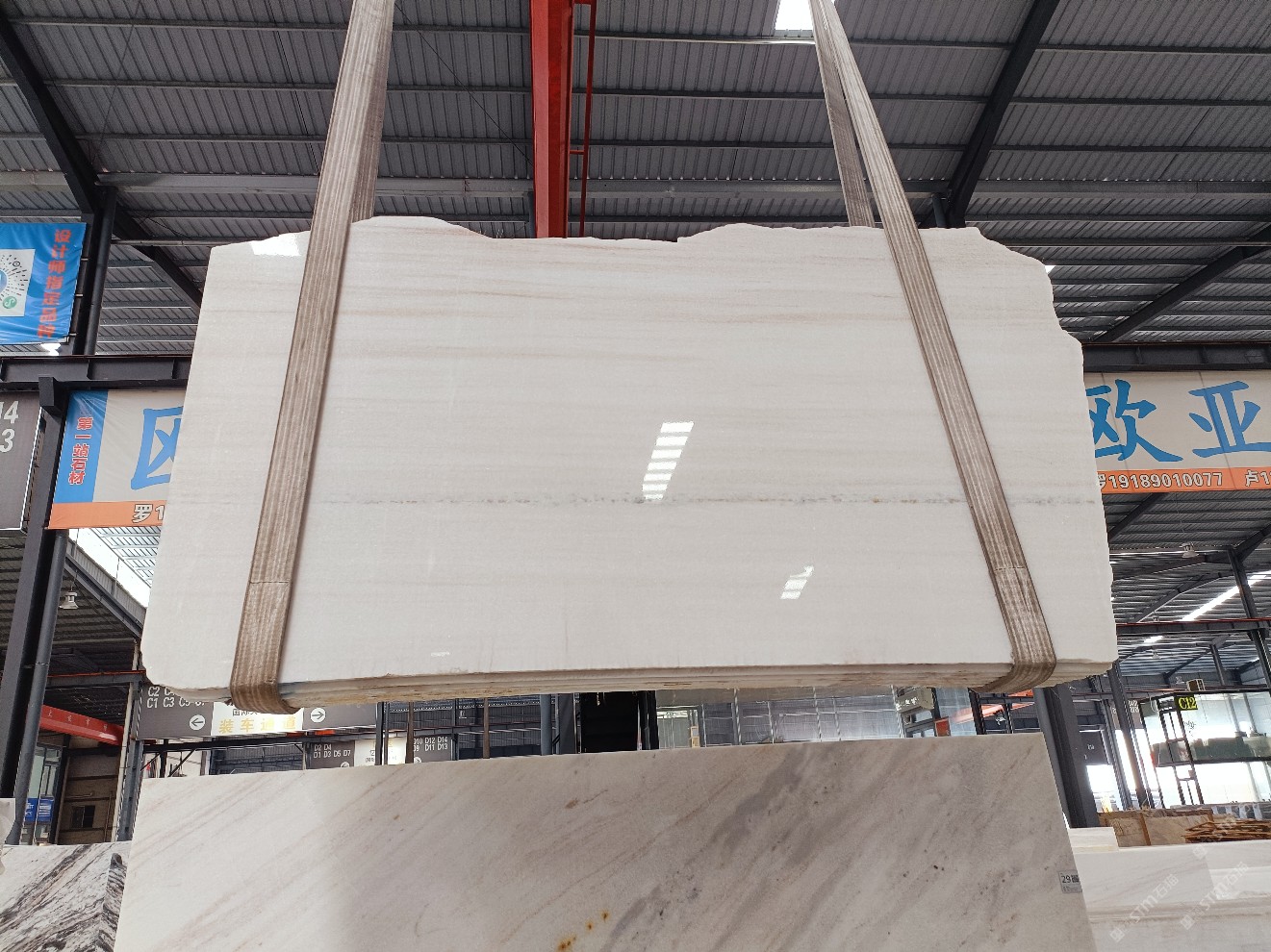 云浮站石材公司開發(fā)的歐亞白獨立礦山,專屬道路,礦口面積約 725 畝,證件齊全。今年礦口開采出直紋,亂紋優(yōu)質大板材料,礦山采用單面墻平臺開采方式,10臺繩鋸、5臺鏟車、5臺勾機、一臺 30 噸叉車,共有職工40人,已有兩個開采平臺。礦山已開采多年,道路、設施都已成熟,現產能穩(wěn)定增長。品質非常穩(wěn)定,一石兩面分別可以產出直紋和亂紋兩種紋路,材質為細膩的玉質品體。
