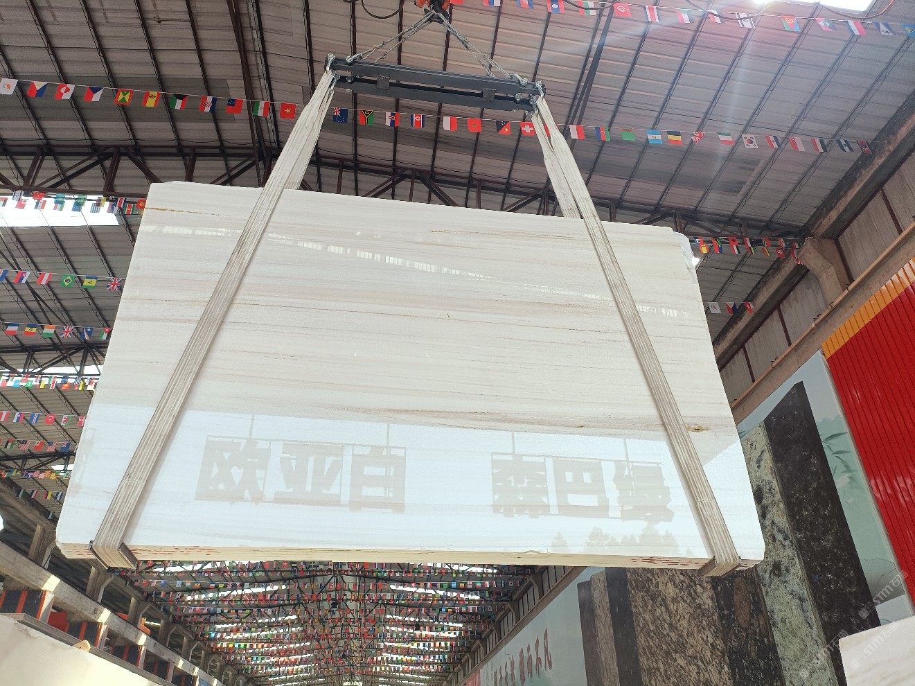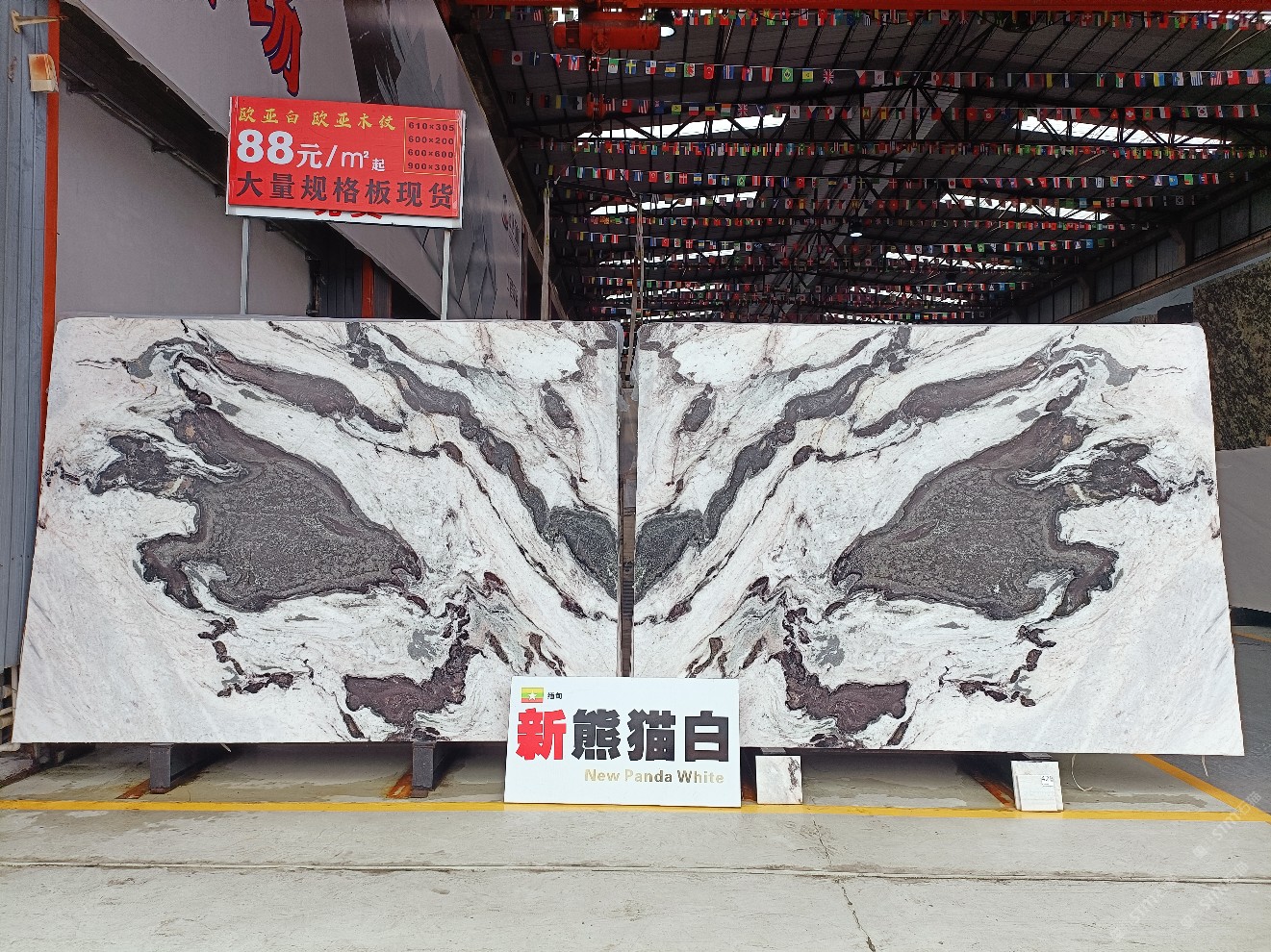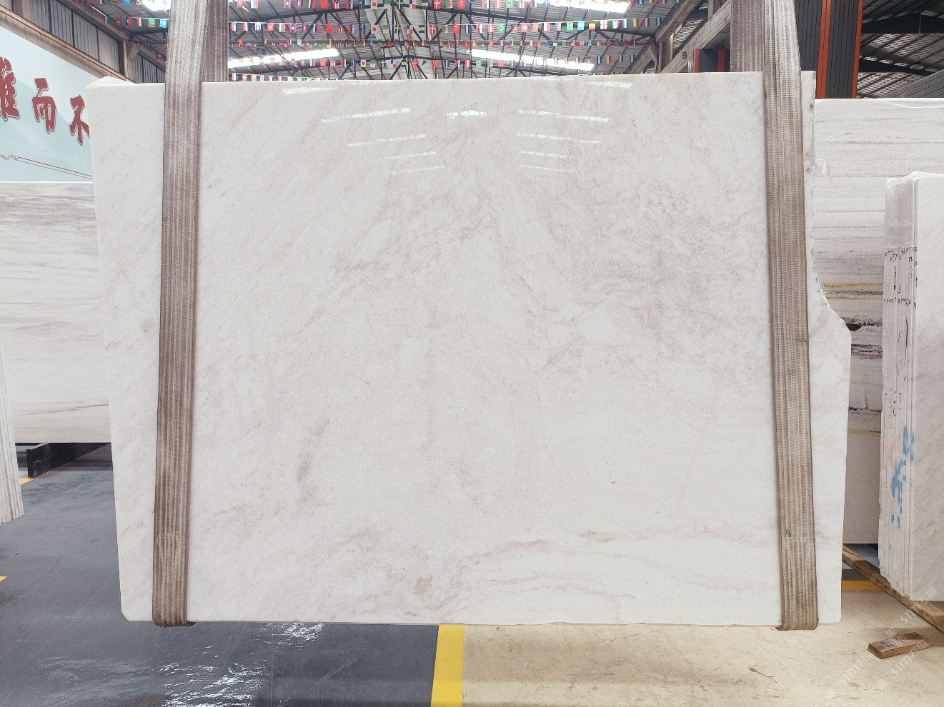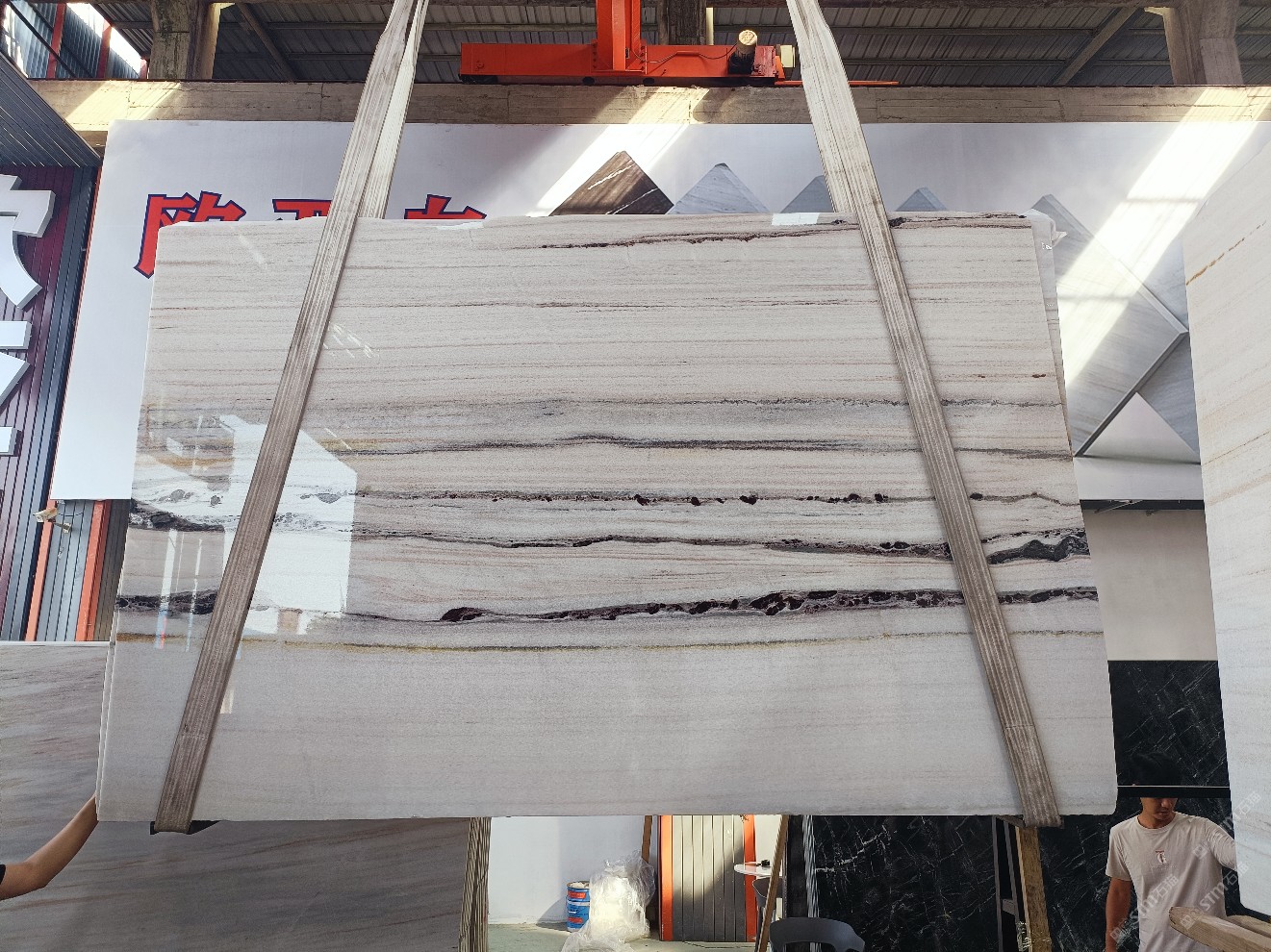 云浮站石材公司開發(fā)的歐亞白獨立礦山,專屬道路,礦口面積約 725 畝,證件齊全。今年礦口開采出直紋,亂紋優(yōu)質大板材料,礦山采用單面墻平臺開采方式,10臺繩鋸、5臺鏟車、5臺勾機、一臺 30 噸叉車,共有職工40人,已有兩個開采平臺。礦山已開采多年,道路、設施都已成熟,現產能穩(wěn)定增長。品質非常穩(wěn)定,一石兩面分別可以產出直紋和亂紋兩種紋路,材質為細膩的玉質品體。