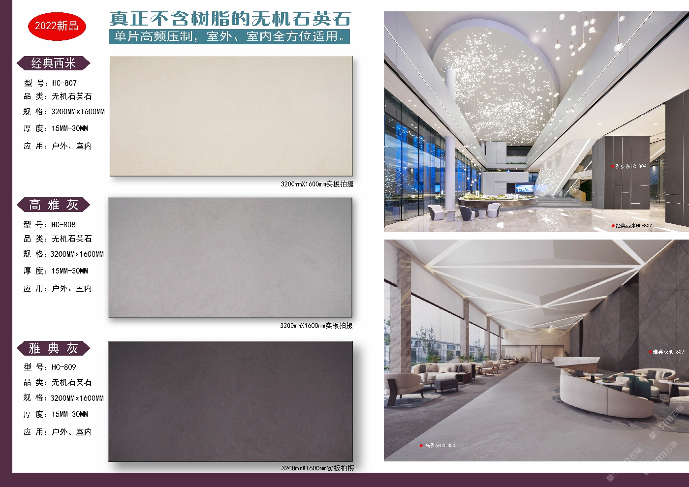專業(yè)研發(fā)生產(chǎn)銷售:無機石英石裝飾板材產(chǎn)品性能具有高硬度、耐磨損、耐高溫、耐侯性好、高抗折強度、低吸水率、抗污易潔、健康無輻射、不含樹脂、可燒火燒面、可應(yīng)用到室內(nèi)外等優(yōu)秀特點。歡迎各位了解洽談合作,電話微信同步:18507665889梁