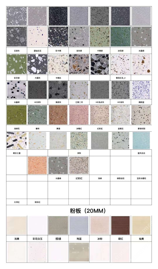 云浮市華達聚賢新型石材有限公司是一家以研發(fā)制造、加工、銷售新型人造石、天然石及其制品的企業(yè)。公司位于云浮市云安區(qū)石城鎮(zhèn)上洞村,占地面積30000平方米,年可生產(chǎn)人造無機石板材、自流平仿石材產(chǎn)品120萬平方。公司擁有原材料生產(chǎn)配套基地,保證日常生產(chǎn)所需的石料、石粉,有成品加工生產(chǎn)車間,有直營門店銷售,能為客戶提供從原材料選料、打樣定制、生產(chǎn)加工、工程配套等服務。華達聚賢新型石材無機水磨石、仿石材產(chǎn)品,屬于循環(huán)利用環(huán)保產(chǎn)品,所有原材料都是無機類選材,產(chǎn)品美觀實用,耐污耐磨,防火性能好,無異味,色彩斑斕,搭配元素多樣,深受國內(nèi)外設計師喜愛,適用于家具、商場、學校、酒店、地鐵站、政府機關、企業(yè)機構(gòu)等大型公共設施室內(nèi)外鑲貼,屬新型環(huán)保建材。公司通過GB/T19001-2016idtISO9001:2015質(zhì)量管理體系認證和GB/T24001-2016idtISO14001:2015環(huán)境管理體系認證。