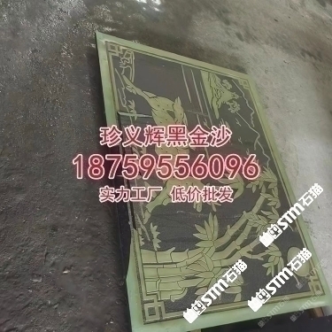 印度黑金沙石材黑金砂牌匾浮雕石雕印度黑石安哥拉黑