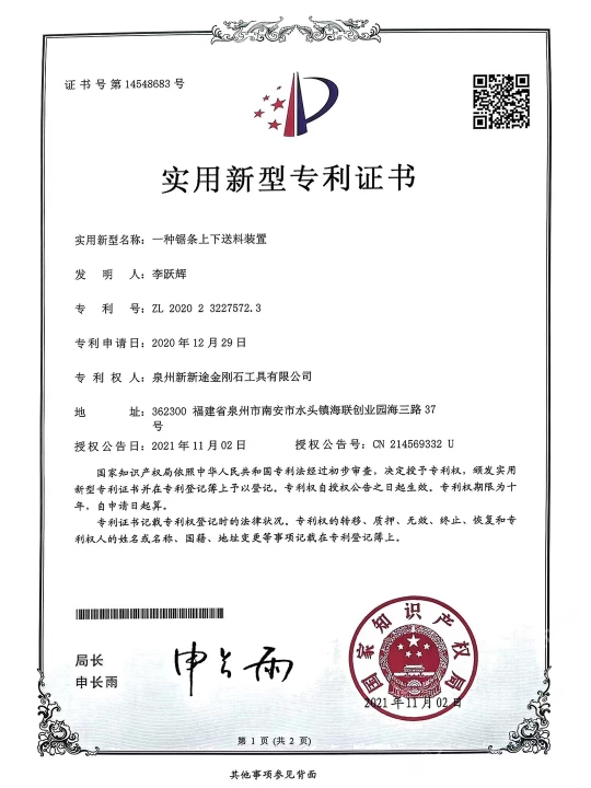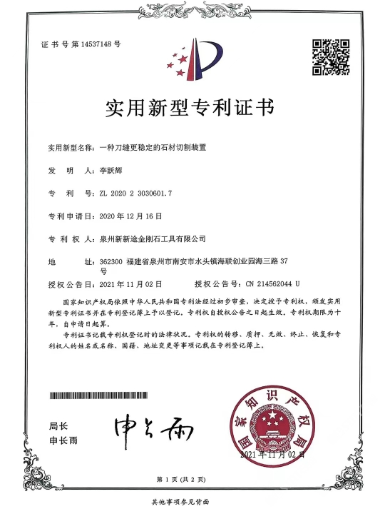 發(fā)布信息: 南安市新途金剛石工具針對目前大理石切割灰料難的現(xiàn) 狀,特別是“愛馬仕灰、瑪雅灰、意大利灰、露娜灰、閃 電灰、灰不灰、羅曼蒂克灰”等帶網(wǎng)格狀花紋、暗裂、孔 洞等切割隱患難加工的荒料,新途工具研發(fā)了一種不掉齒 的排鋸刀頭:“安全切割一切難加工的灰色大理石荒料”。 不單是刀頭鋸條特殊設(shè)計,更是結(jié)合了十多年的切割經(jīng) 驗,通過對機臺冷卻水及操作參數(shù)、退刀和出料等操作工 藝的改進,大大地提高了灰料切割的安全、高效。真正做 到了不倒料或少倒料。 作為長期穩(wěn)定的合作方,誠懇感謝:東升股份/遠達石材/ 奧力石業(yè)/泉興隆石業(yè)/翰將石業(yè)/中發(fā)大理石/新容石業(yè)/寶 多龍石業(yè)/銳豐源石業(yè)/漢榮石業(yè)/超億石業(yè)/宗藝石業(yè)/尊龍 石業(yè)/正大石業(yè)/銘裕石業(yè)/正方石業(yè)/尚衡石業(yè)/捷成石業(yè)/振 南石/天正/描側(cè)石/率硬石上/仏期石/流中石上/灣源 石業(yè)/瑜興石業(yè)/豪闊石業(yè)/興業(yè)石業(yè)/萬華石業(yè)/振興石業(yè)/豪 聞石業(yè)/奧都石業(yè)/永光石業(yè)/明晟石業(yè)/加州(安固)石業(yè) 等等優(yōu)質(zhì)供應商廠家(排名不分先后) 本公司秉承合作共贏,誠懇敬業(yè)的態(tài)度在石材加工切割領(lǐng) 域深度專研。歡迎廣大群體來領(lǐng)略新途。