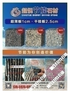 發(fā)布信息: 木瑪麗/藍(lán)寶石/英國棕(超薄板)吳總 13859760852手機(jī)微信同號-福建超悅石材薄板科技有限公司是一家專注于生產(chǎn)、研發(fā)花崗巖超薄板的研發(fā)型企業(yè),秉承“用創(chuàng)新的芯、做超薄的板、走節(jié)能的路”的發(fā)展理念,在多年來堅持不懈的努力下,成功地研發(fā)了擁有環(huán)保性能及高新技術(shù)的超薄板,其優(yōu)點可與國際薄板加工技術(shù)媲美。 花崗巖超薄板被廣泛應(yīng)用于復(fù)合板領(lǐng)域,包括保溫材料和鋁蜂窩等,是建筑外墻裝飾材料的。該產(chǎn)品降低了建筑成本、節(jié)約了裝飾 材料,縮短了施工周期,是當(dāng)今社會廣為提倡和國家大力推廣的綠色、環(huán)保、節(jié)能建筑裝飾材料。 公司堅持奉行“創(chuàng)新永不止步,品質(zhì)始終如一”的經(jīng)營理念,爭創(chuàng)花崗巖超薄板領(lǐng)導(dǎo)品牌,將花崗巖超薄板做專做精做廣做強(qiáng)。
