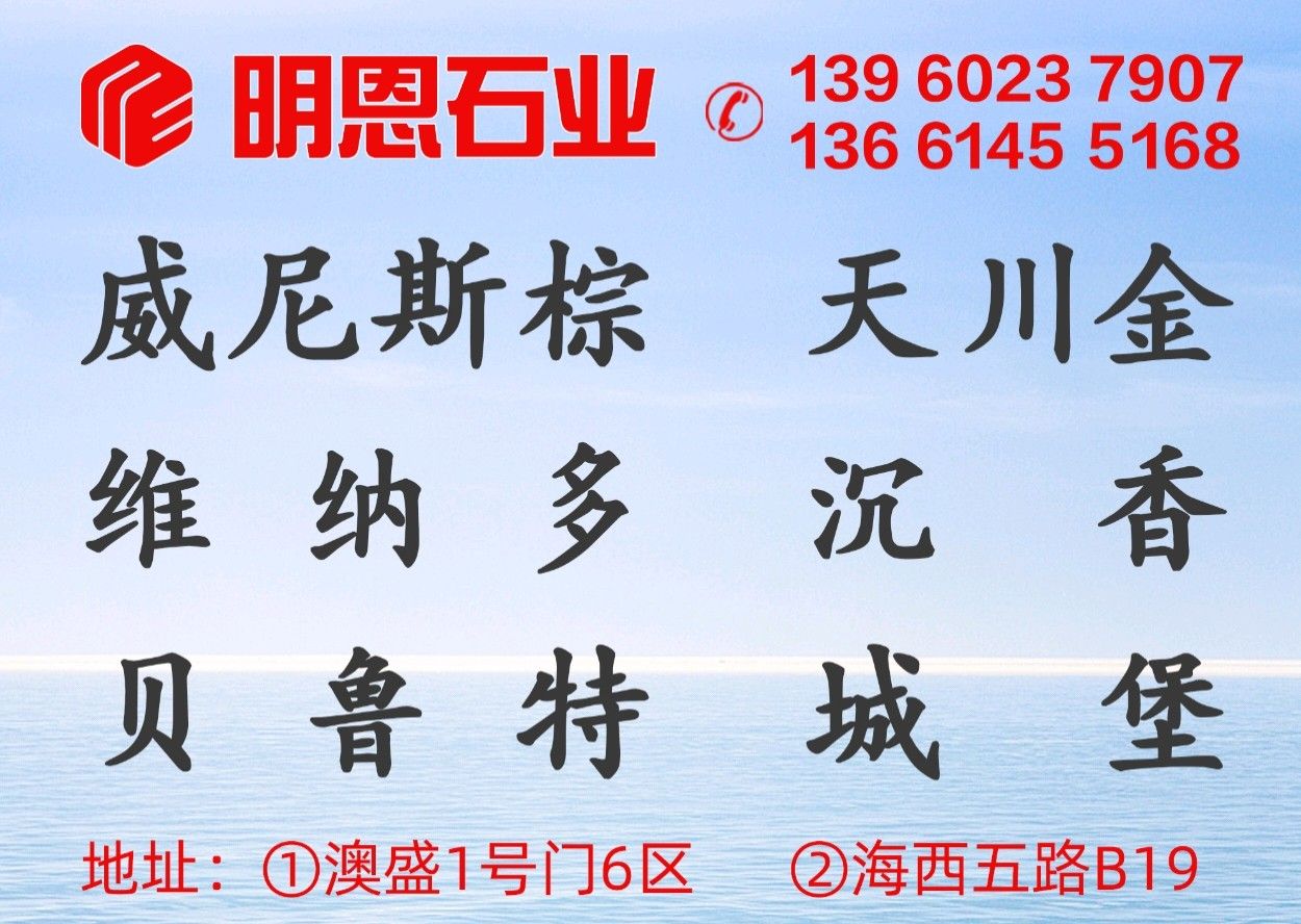 上海明恩石業(yè)有限公司 聯(lián)系人:鄭文永    136****5168 查看 手機號碼:無 主營范圍: 大板批發(fā)、荒料、大理石加工、 企業(yè)地址:上海上海嘉定區(qū)曹安公路4135號(藍英石材內(nèi))