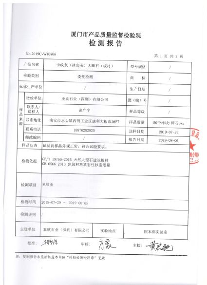 亞欣石材卡紋灰冰島灰檢測報告