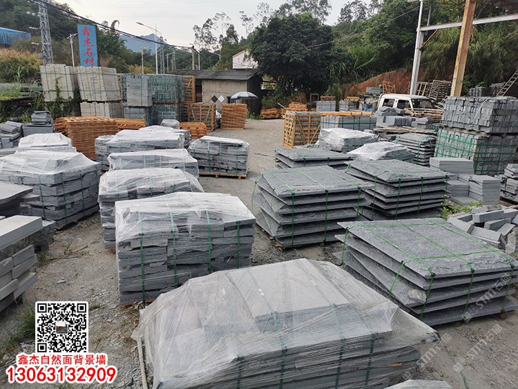 自然面654石材別墅背景墻新芝麻黑仿古面芝麻灰廠家