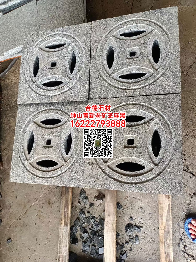 廣西鐘山青花崗巖水溝蓋板新芝麻黑654石材雨水篦子