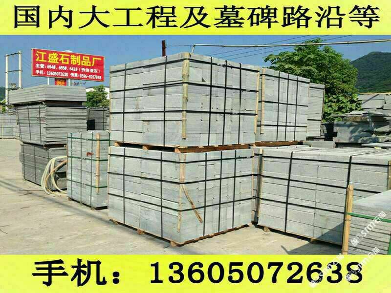發(fā)布信息: 長泰縣江盛石制品廠(王先生 手機微信:13605072638)位于福建長泰的石材之鄉(xiāng)--林墩后爐工業(yè)區(qū),擁有自己大型的G654礦山,在天津與杭州有經銷部,是一家集礦山開采、生產加工及經銷部為一體的專業(yè)石制品供應商.距廈門市60公里,離郭坑火車站僅40公里,不論是汽運,船運或者鐵路運輸都十分便捷. 公司主要經營G654芝麻黑,G655#,G614#,G603#,銹石等磨光板、火燒板、荔枝面、龍眼面、蘑菇石、機刨石、路沿石、滾石、盲道石及異形加工。G654#石材被廣泛用于鋪設廣場、公園、街道、停車場等場所,具有防滑、抗酸堿、耐磨、耐壓等優(yōu)點,可拼鋪成各種幾何圖案,美觀實用,符合現代建筑人與自然相結合的審美情趣,是工程建設、室內外裝飾的建材,還可根據客戶需求加工石雕、影雕、碑石、墓石等工藝品。產品遠銷香港、臺灣、日本、東南亞、歐洲等地。北京東方廣場建筑群、上海世紀大道、廈門國際會展中心地面工程等均采用了G654#等石材產品。 公司自創(chuàng)建以來,秉承重合同守信用,質優(yōu)價廉的經營理念,視客戶的需求為我的需求,客戶的滿意為我的滿意,贏得了客戶的一致好評.真誠歡迎新老客戶來電來函洽談.王先生聯系手機:13605072638