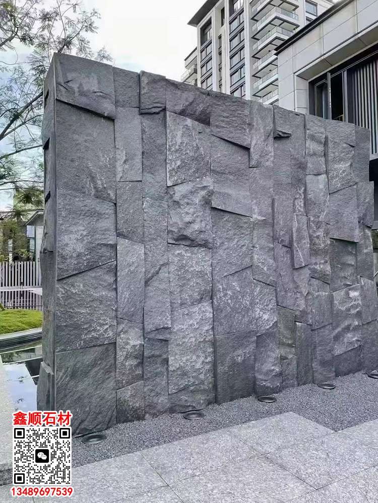 芝麻黑石皮背景墻自然面背景墻景觀墻石皮墻文化石墻磚