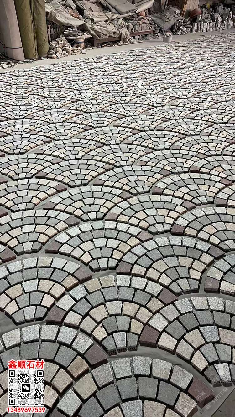 天然花崗巖扇形馬蹄石扇形網(wǎng)貼彈石小料石芝麻黑黃銹石