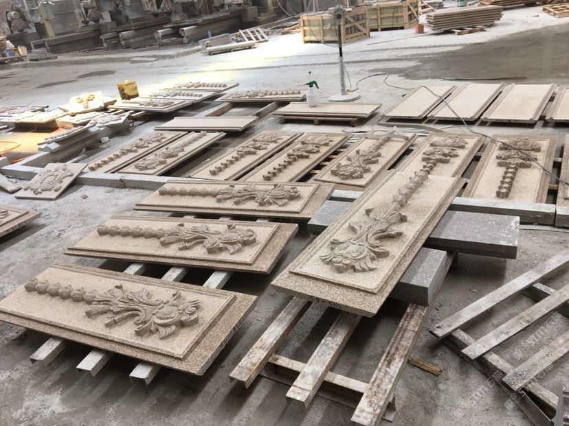 綠城異形-別墅線條、雕花、浮雕異形、黃銹石、蝦紅