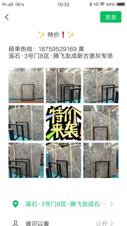 發(fā)布信息: 感恩回饋新老客戶 場(chǎng)上部分板面特價(jià)出售 溪石三號(hào)門八區(qū)騰飛友成新古堡灰專場(chǎng) ?18759529169